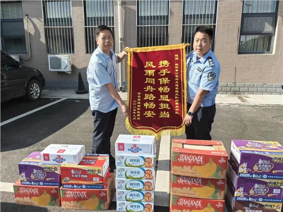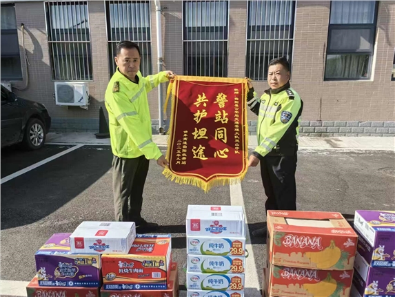 会后,为进一步深化警站协作,鼓励和感谢地方交警大队在引车上路、保障安全畅通等方面对曲阳收费站的关键支持,曲阳收费站为曲阳县公安局交通管理大队郎家庄中队、灵山中队敬赠锦旗,并为全体民警送去保障工作所需的方便面、火腿肠、牛奶、水果等慰问品。